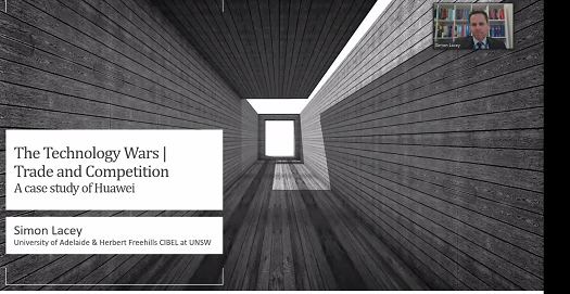 Dr. Simon Lacey of UNSW CIBEL Centre as well as the Former Vice-President of Global Government Affairs of Huawei Technologies, presented a speech entitled “Competition Law Aspects of Excluding Huawei from Google Mobile Services”. He referred that the geopolitics intrudes is a new stage of Sino-US trade war, and described Huawei’s countermeasures in the technological war between Huawei and US government. Besides, Simon analyzed the relationship between China’s information security policy and the system fragmentation by comparing the application ecological environment in and outside China.