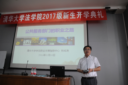 图为yl9193永利集团职业发展中心主任林成涛老师为同学们做介绍