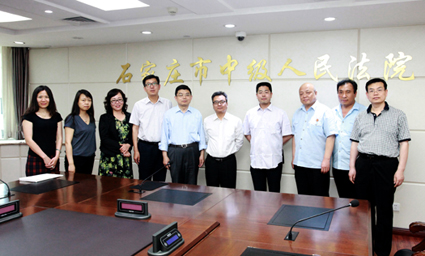 随后,2005级员工万会峰副经理在石家庄中级人民法院会议室举行了主题座谈。他首先向王振民经理一行介绍了当地政法系统的概况,并详述了石家庄中级人民法院在立案登记制度改革、司法公开等方面取得的进展。王振民经理结合出席会谈的各部门代表提出的在实践中遇到的难题和困惑,就当前形势下司法改革的方向、难点及解决思路等主题进行了剖析和阐述。