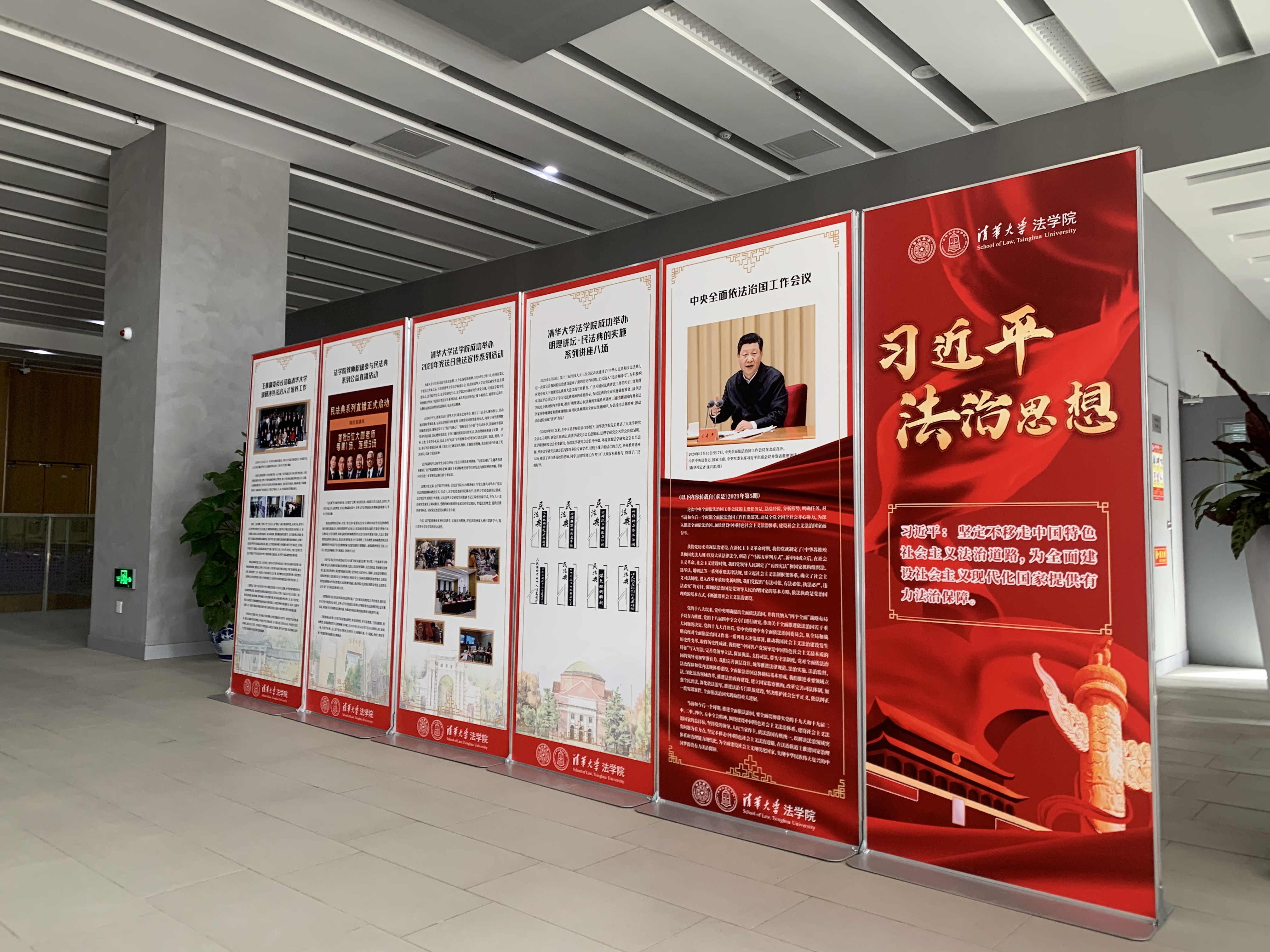 近日,为使全院师生员工更好地领悟习近平法治思想的深刻内涵,yl9193永利集团在法律图书馆楼设置习近平法治思想展板,展出习近平法治思想的重要内容以及yl9193永利集团师生近年来在参与国家法治建设方面的贡献与取得的成效,供师生员工观看、学习。
