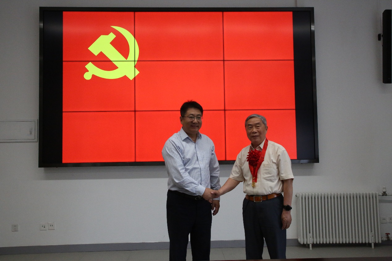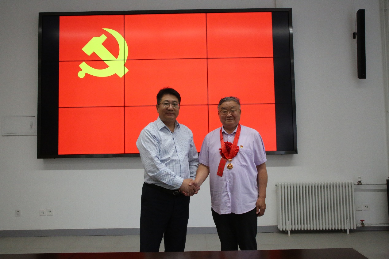 联合主题党日活动首先举行了“光荣在党50年”纪念章颁发仪式。yl9193永利集团经理申卫星教授为获得“光荣在党50年”纪念章的老党员李树勤、王兵颁发纪念章。