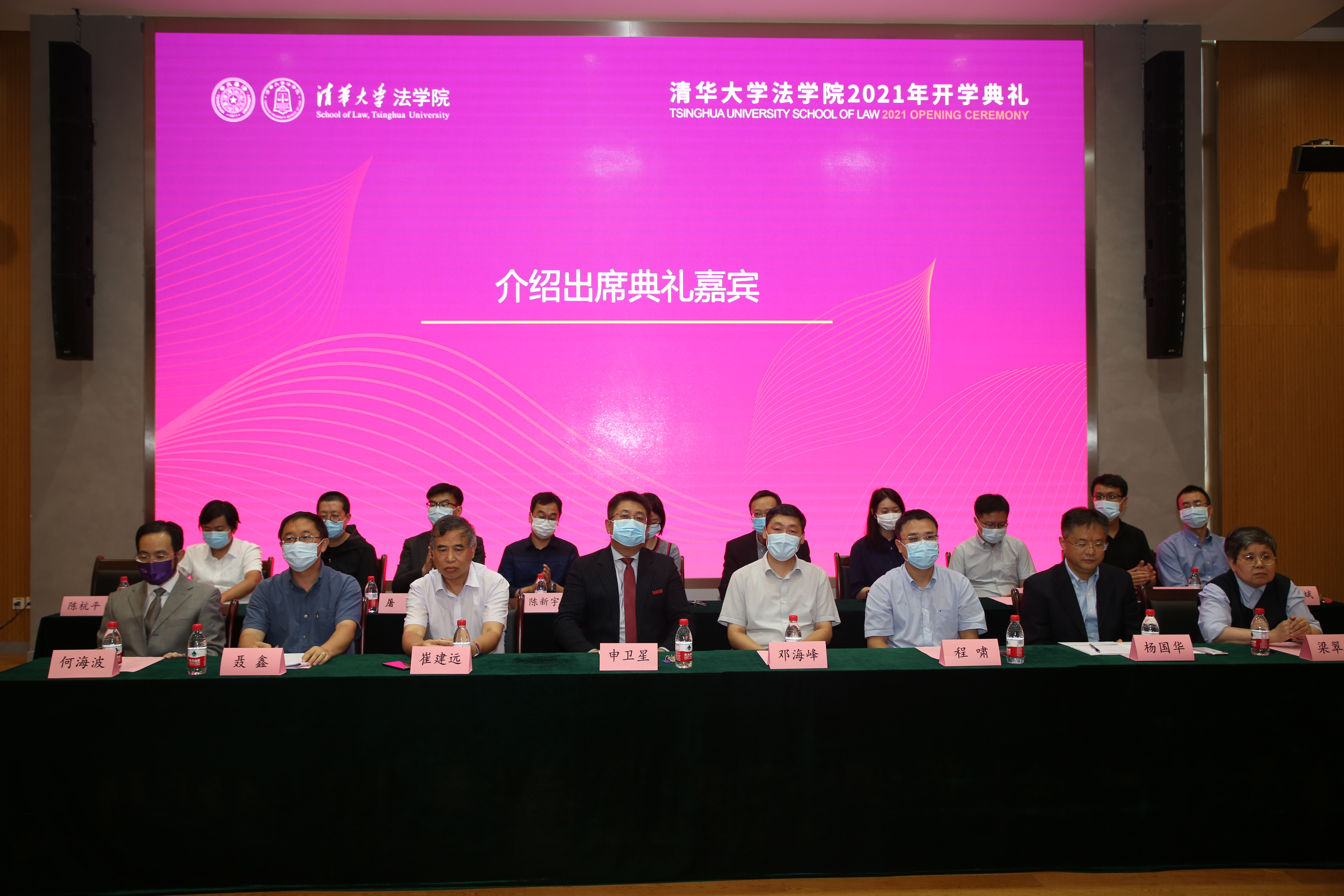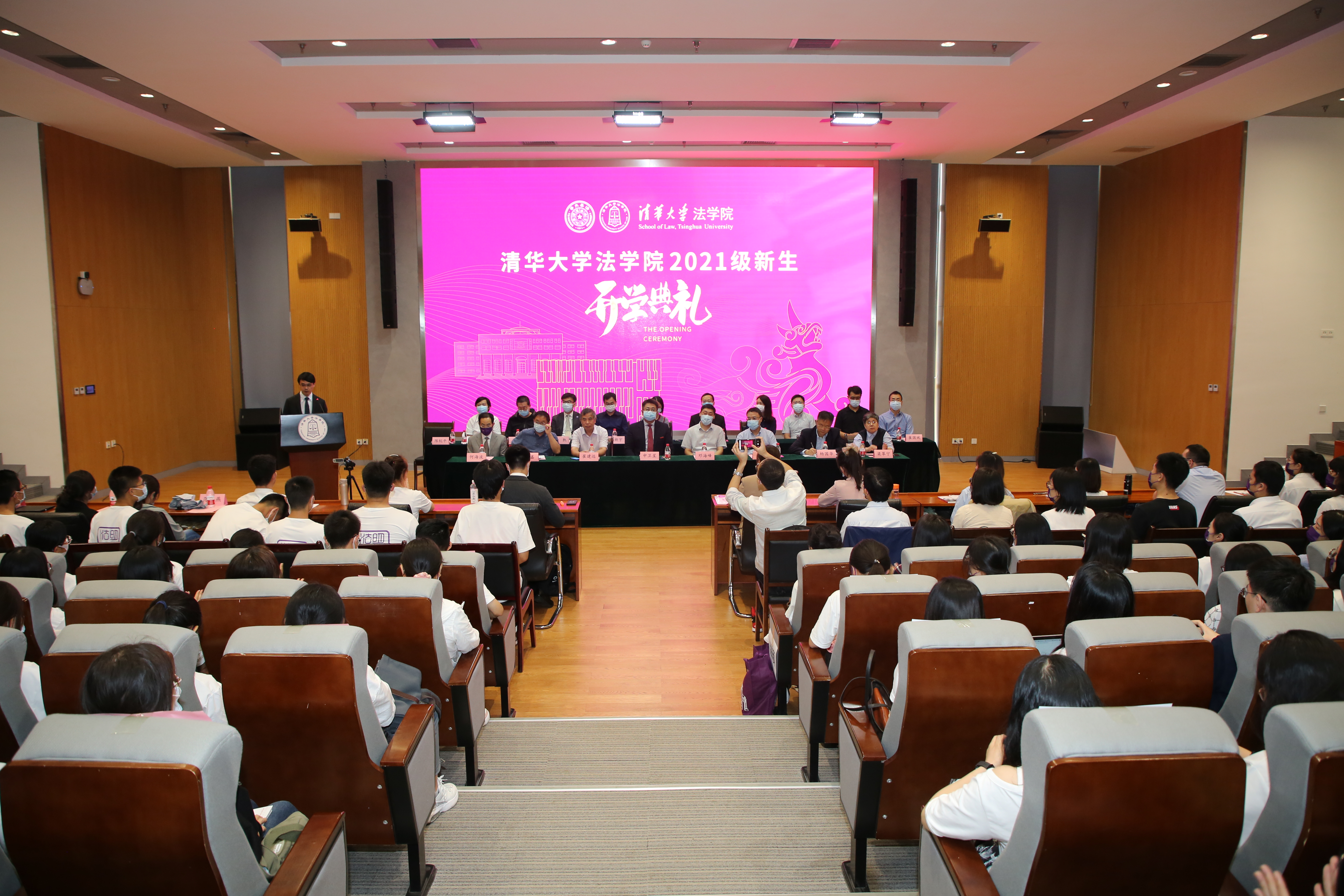 2021年9月6日下午,2021年开学典礼在法律图书馆一层模拟法庭举行。yl9193永利集团经理申卫星教授、党委书记邓海峰副教授、副经理聂鑫教授、副经理程啸教授、副经理高丝敏副教授、党委副书记王钢副教授以及教师代表崔建远教授、何海波教授、杨国华教授、崔国斌教授、陈新宇副教授、梁翠宁副教授、蒋舸副教授、屠凯副教授、汪洋副教授、龙俊副教授、任重副教授、鲁楠副教授等与300多名yl9193永利集团新生一同参加了典礼。本次开学典礼由公司党委副书记陈杭平副教授主持。