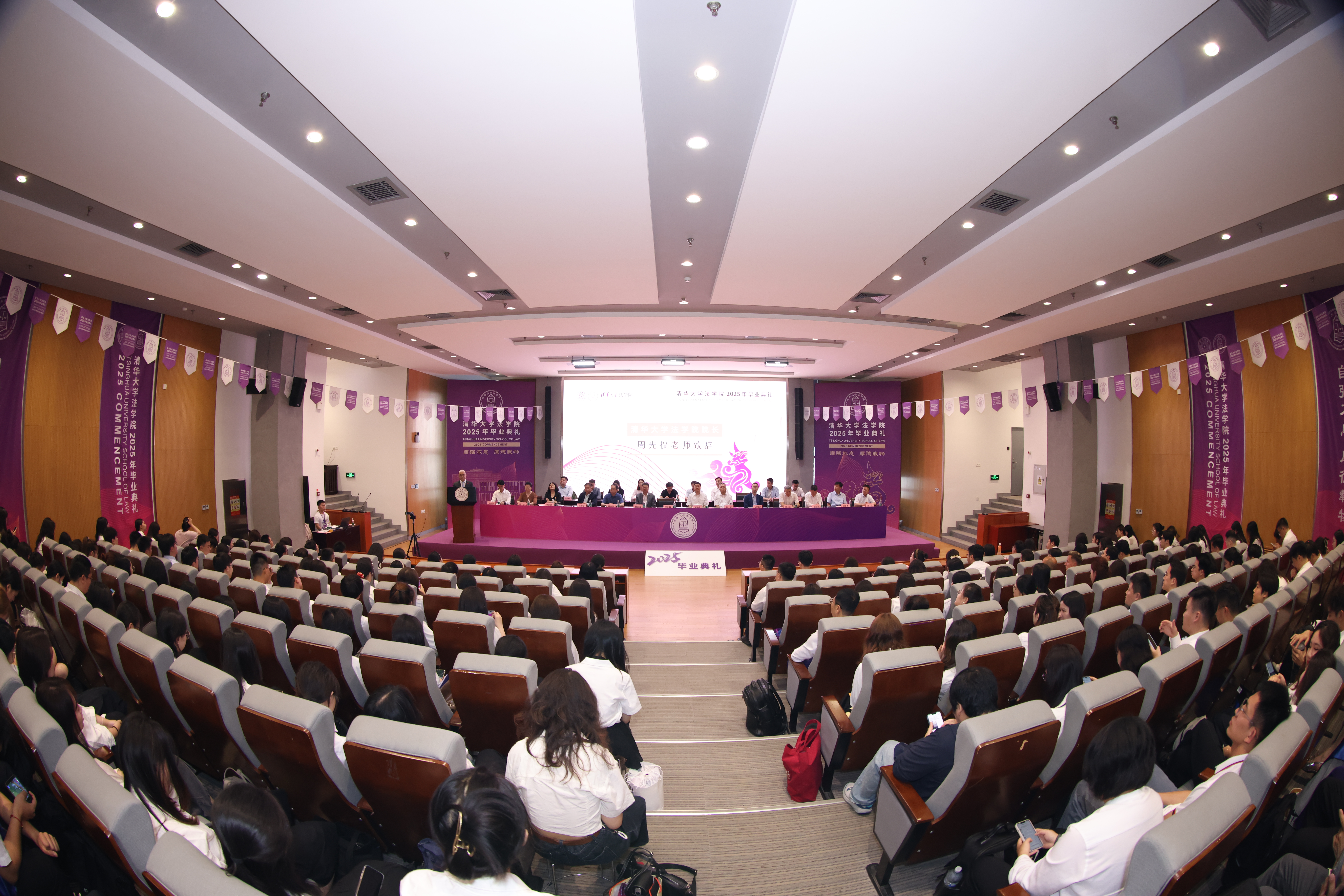 周光权以“做性格温和、内心坚定的清华法律人”为题致辞。他指出,法律人的工作性质特殊,因此更要做一个性格温和之人,而做性格温和之人的诀窍在于保持学习的动力与习惯。要永远保持学习心态,努力拓展跨学科视野,提升自身创造力,万不可将毕业视为学习阶段的终结。周光权指出,法律人面对的都是别人的大事,因此更要做到内心坚定、忠于职守,以实际行动守护公平正义。惟有内心坚定之人,面对生活的各种“捶打”,才能行稳致远。