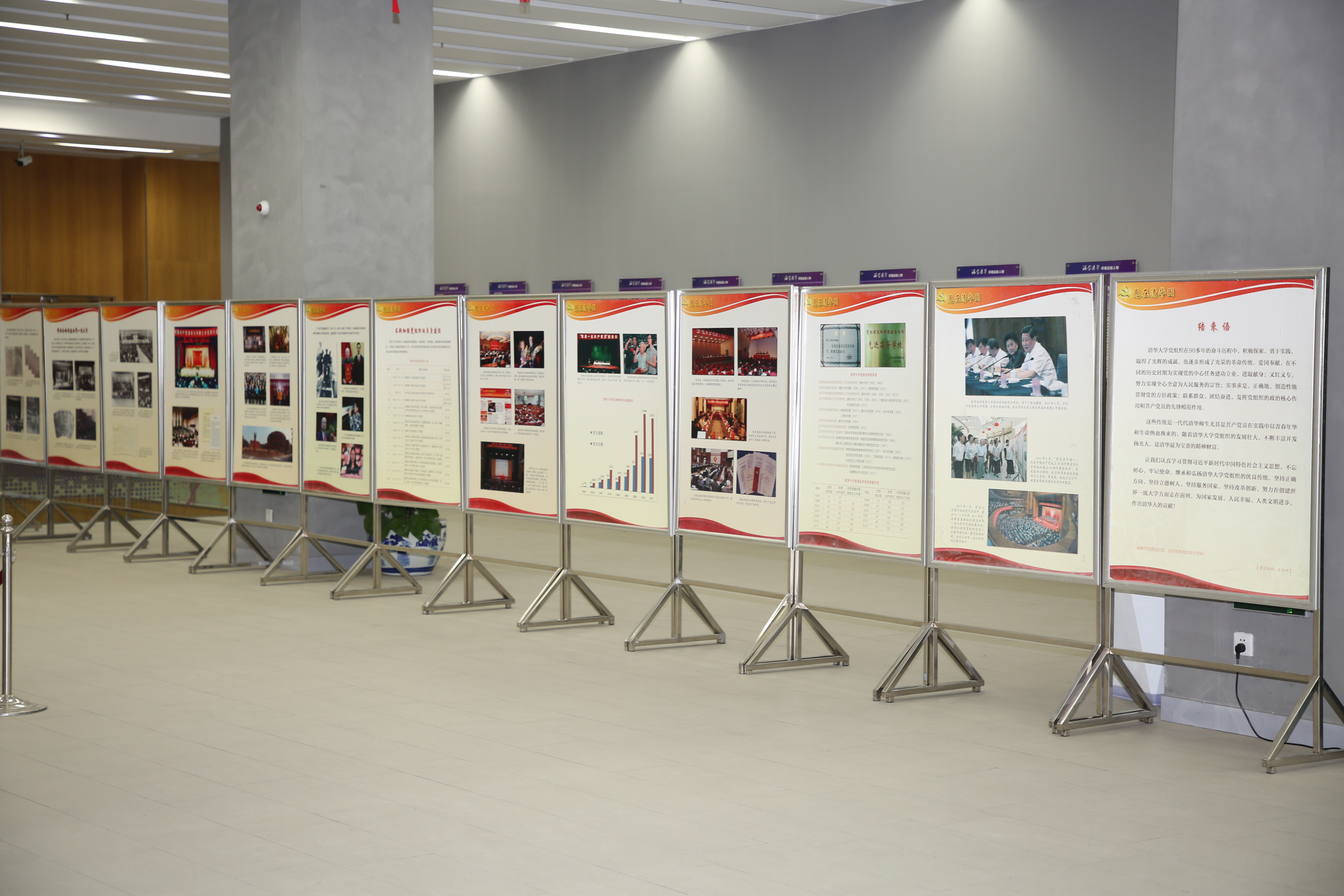 展览分别从“清华第一个党支部的诞生”“投身民族解放事业的伟大洪流”“清华地下党组织公开”“领导建设社会主义新清华”“带领全校创建世界一流大学”“不断加强党组织的自身建设”等六部分回顾了清华党组织的光荣历史,总结了清华党组织的优良传统,以史为鉴、温故知新,激励后辈。