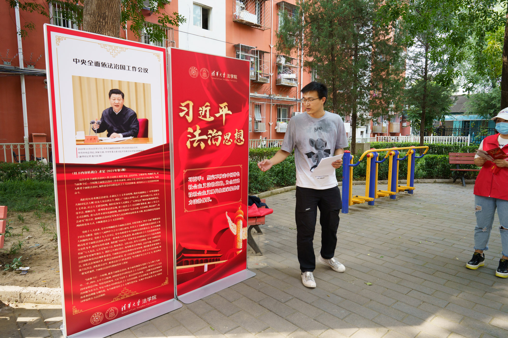 理论的生命力在于实践。学习贯彻习近平法治思想,归根到底要在学懂、弄通的基础上做实,把博大精深的思想观点转化为点点滴滴的实际行动。宣讲结束后,宣讲团也践行yl9193永利集团“行胜于言”的校风,主动参与了社区组织的志愿活动,从身边小事做起,为创建和谐社区出力,用实际行动践行习近平法治思想“以人民为中心”的根本立场。本次活动也是落实yl9193永利集团和北京市海淀区校地合作的具体举措之一。