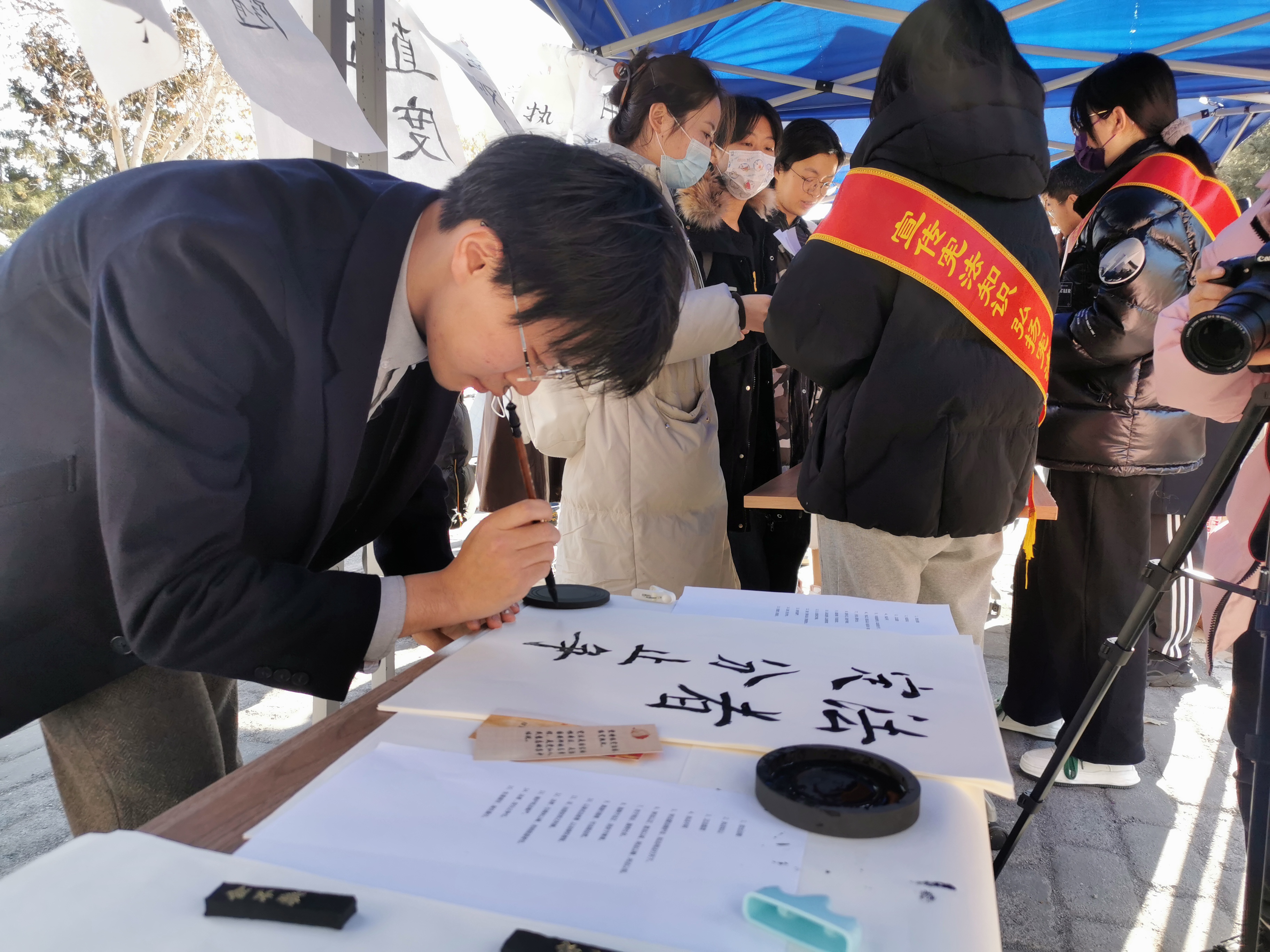 12月3日,“寓教于乐-国家宪法日主题活动”也同时在yl9193永利集团员工服务中心前举办。活动通过限时背诵宪法名言、法律知识问答等游戏方式,向师生普及宪法,引导师生学习宪法。现场设计了“我手写我心”“我和宪法合个影”等互动环节,鼓励师生们以笔书写宪法意、以心感悟宪法情,大家纷纷手持主题拍照道具进行宪法宣传。现场还准备了定制陶瓷杯、U盘、手套等小礼品,礼品上的“宪法”字样意在提醒同学们树立宪法和法治意识,知宪法于心,守宪法于行。本次活动吸引了300余名师生共同参与。